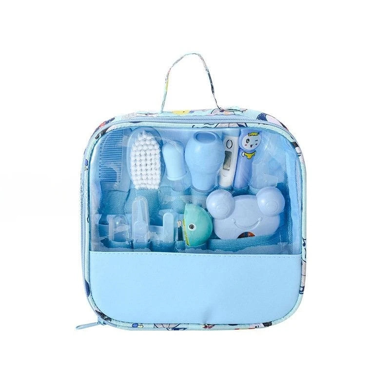 Our Baby healthcare and grooming kit includes a set of electric nail trimmers, 7 nail files, nail clippers, nail files, rounded safety scissors, hair brush, hair comb, nasal aspirator, baby medicinal feeding spoon and dropper, baby digital thermometer, bath thermometer, tweezers, finger toothbrush, LED ear spoon, and tote case. The best infant grooming set necessities for newborns fully meet your baby's daily needs!