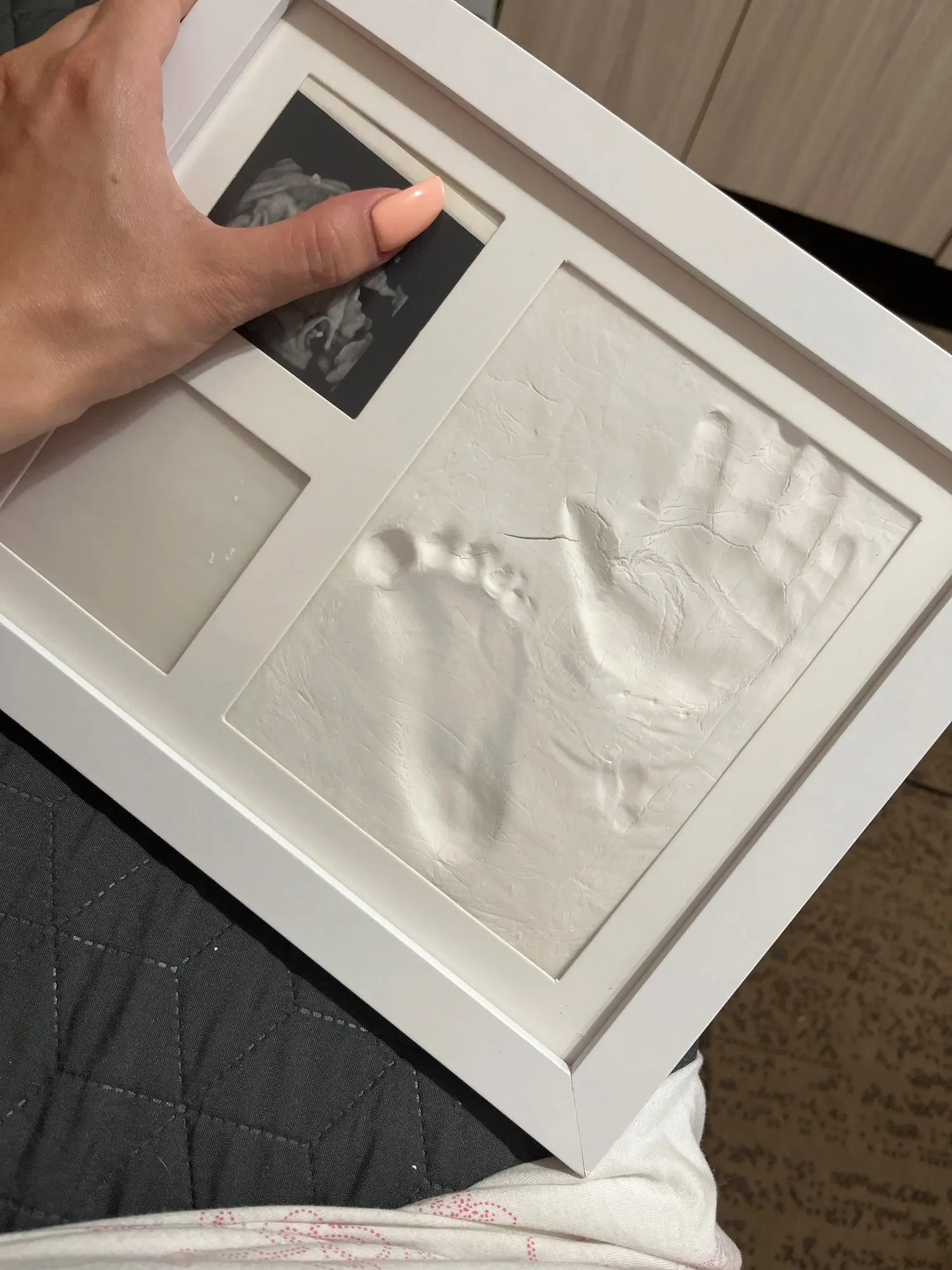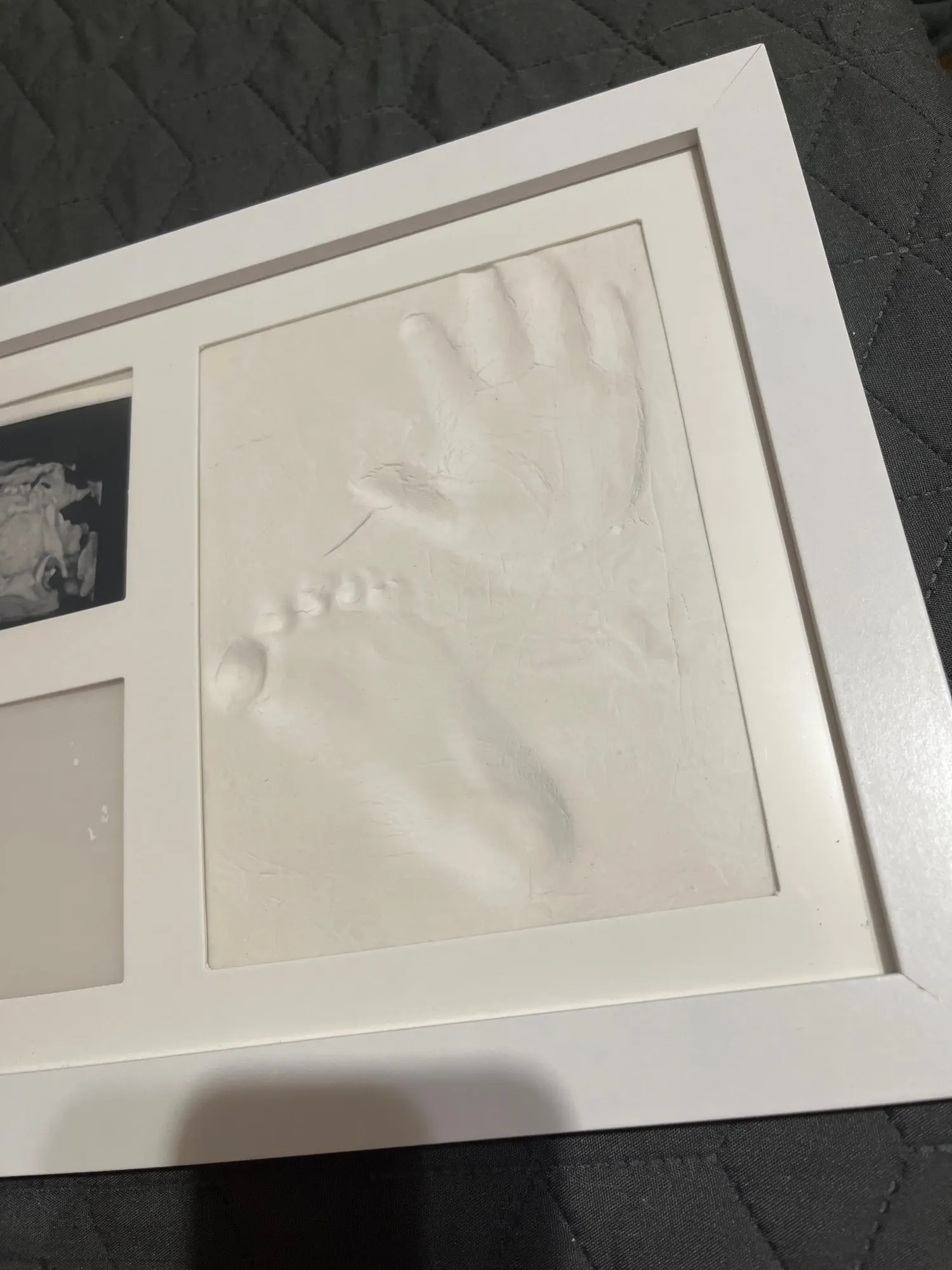 It's a pretty lovely frame and comes with a lot of clay. I'll be able to male a separate hand print out of the clay that's left. This will be a beautiful memory frame that will.lasy decades and it's a birthday gift to my 85 year old mother in law. Grandma will be delighted ☺️