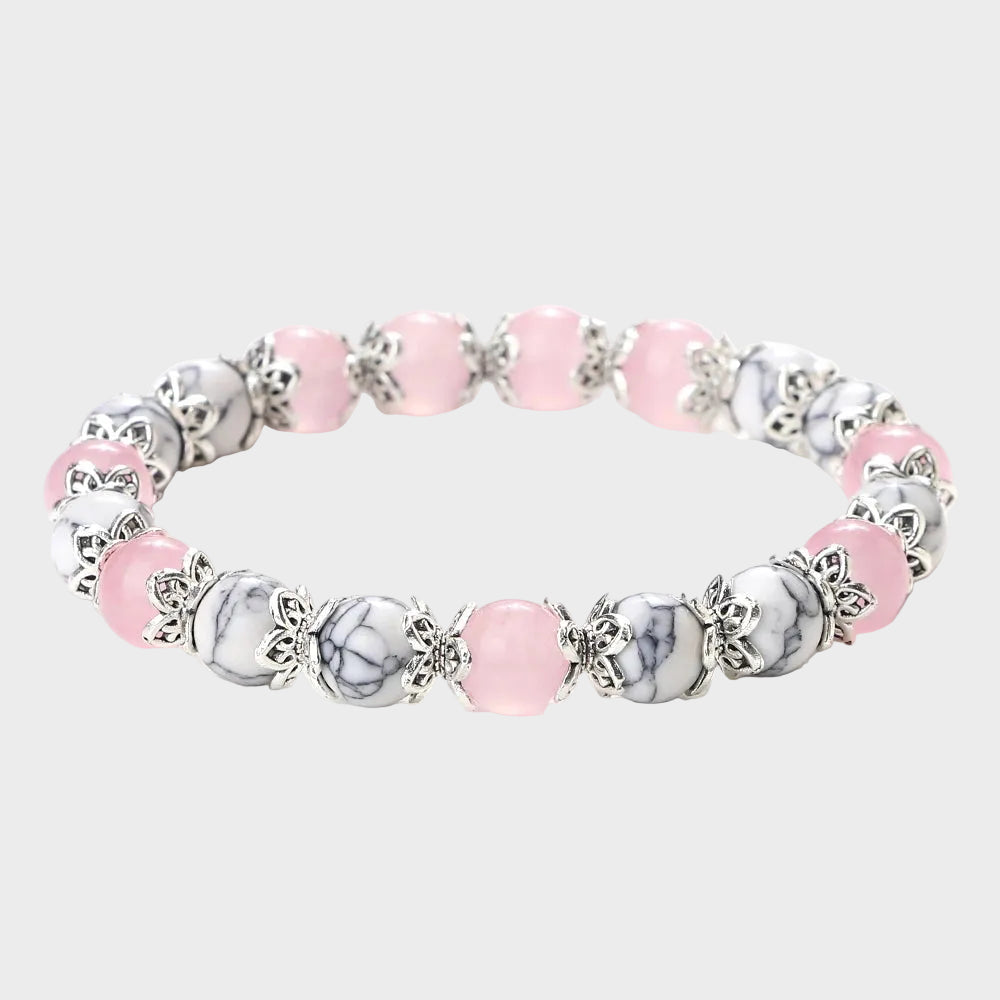 Embrace effortless elegance with this boho strand bracelet, crafted from genuine 8mm natural stone beads featuring crystal quartz and agate. Each round bead is carefully selected for its unique patterns and calming energy. The stretchy design slips on easily and adjusts to fit most wrists comfortably, making it perfect for everyday wear or layering with other pieces. Whether you're drawn to the grounding properties of natural stones or simply love the organic beauty of bohemian style, this versatile bracelet adds a touch of natural sophistication to any outfit.