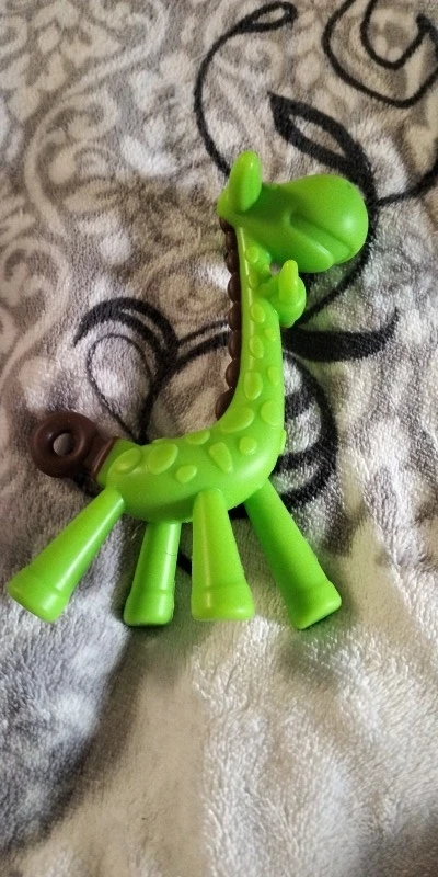 It is very beautiful and eye-catching. It doesn't smell like plastic. My baby likes it a lot. I would buy it again. It's great for relieving the baby's gums.