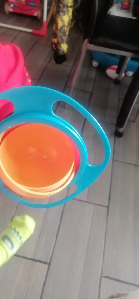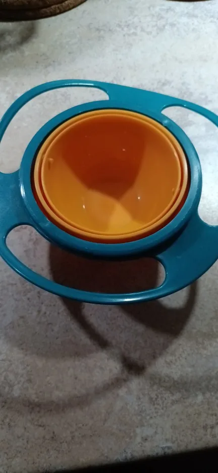 The inner magic gyro bowl with gyroscopic motion can rotate 360 degrees to keep dry food inside and avoid food spilling. Make less mess—snacks don't fly around even if you hold the bowl sideways.
