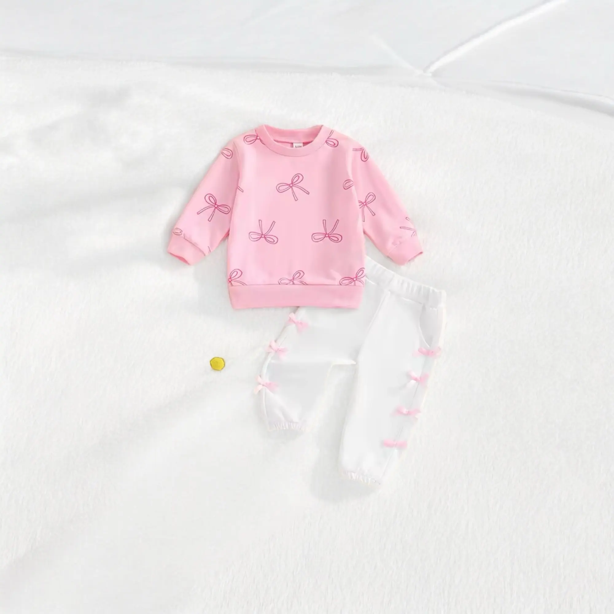 Complete your cozy, stylish look with our 2 Piece Set Bow Sweatshirt and Pants. The delicate bow detail adds a touch of femininity to this comfortable set. Stay warm and fashionable all day long.