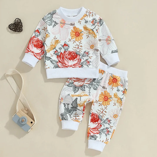 2 Pieces Floral Long Sleeve Suit