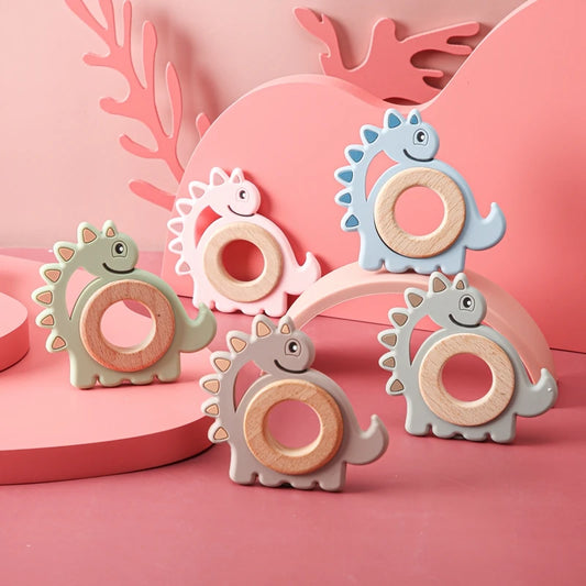 Anneau de dentition en silicone pour bébé en forme de dinosaure