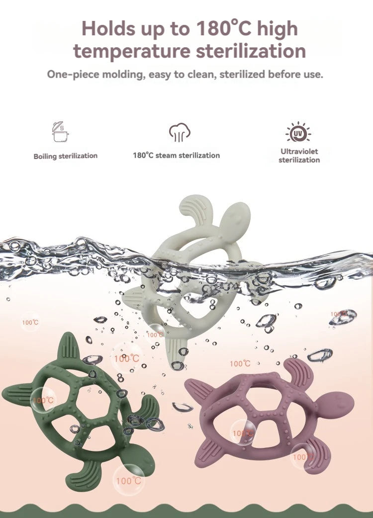 Soothe your baby's teething discomfort with our Turtle Teether! Made from safe and durable materials, our teether provides relief while stimulating hand-eye coordination. Perfect for little ones in the teething stage. Let our friendly turtle help your baby through this tough time.