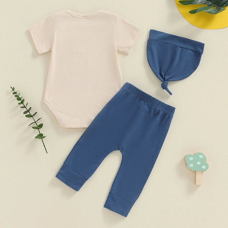 Stay cool and stylish this summer with our 3 Piece Summer Baby Outfit. Made with lightweight, breathable fabrics, this outfit will keep your little one comfortable and happy. Perfect for a day at the park or a family picnic, this outfit is a must-have for any baby's wardrobe.