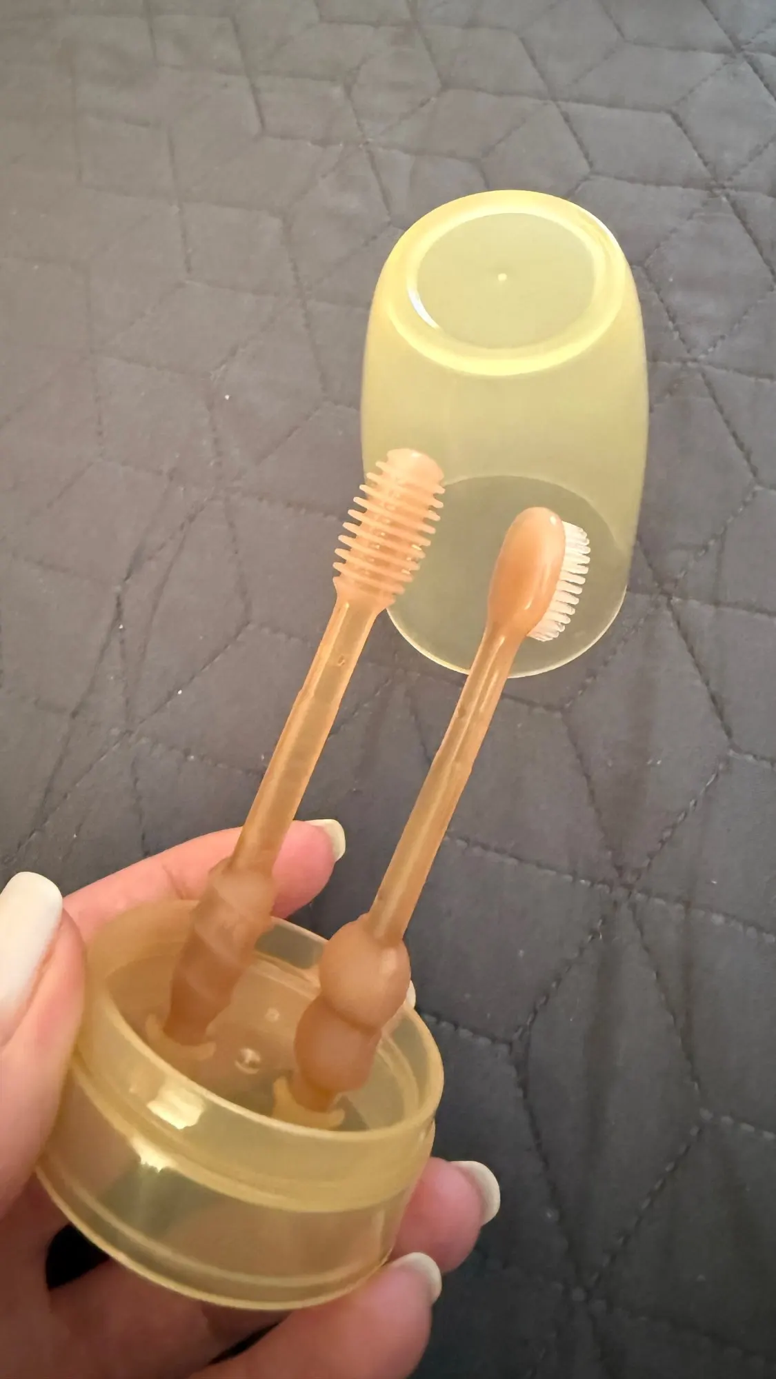 Exactly as in the advertisement. My baby loves it when I brush his teeth and gums. He even takes the mouth to my hand.