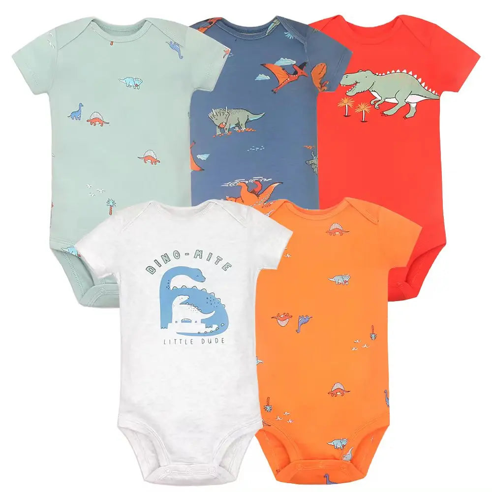 Stay stylish and comfortable with our 5 piece floral bodysuit. Each set comes with 5 bodysuits, so you'll always have one on hand. The floral pattern adds a fun and trendy touch, while the soft fabric ensures all-day wear ability. Mix and match for endless outfit options!