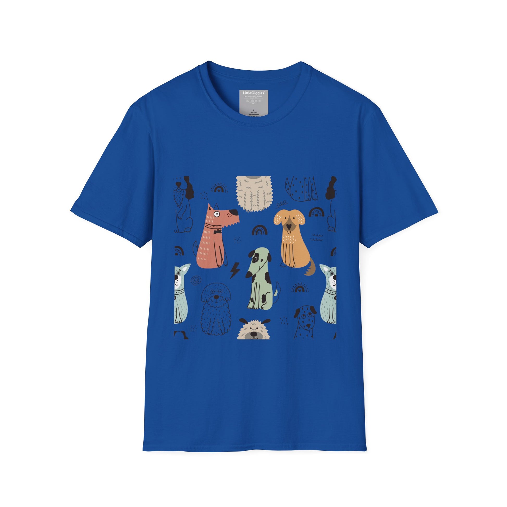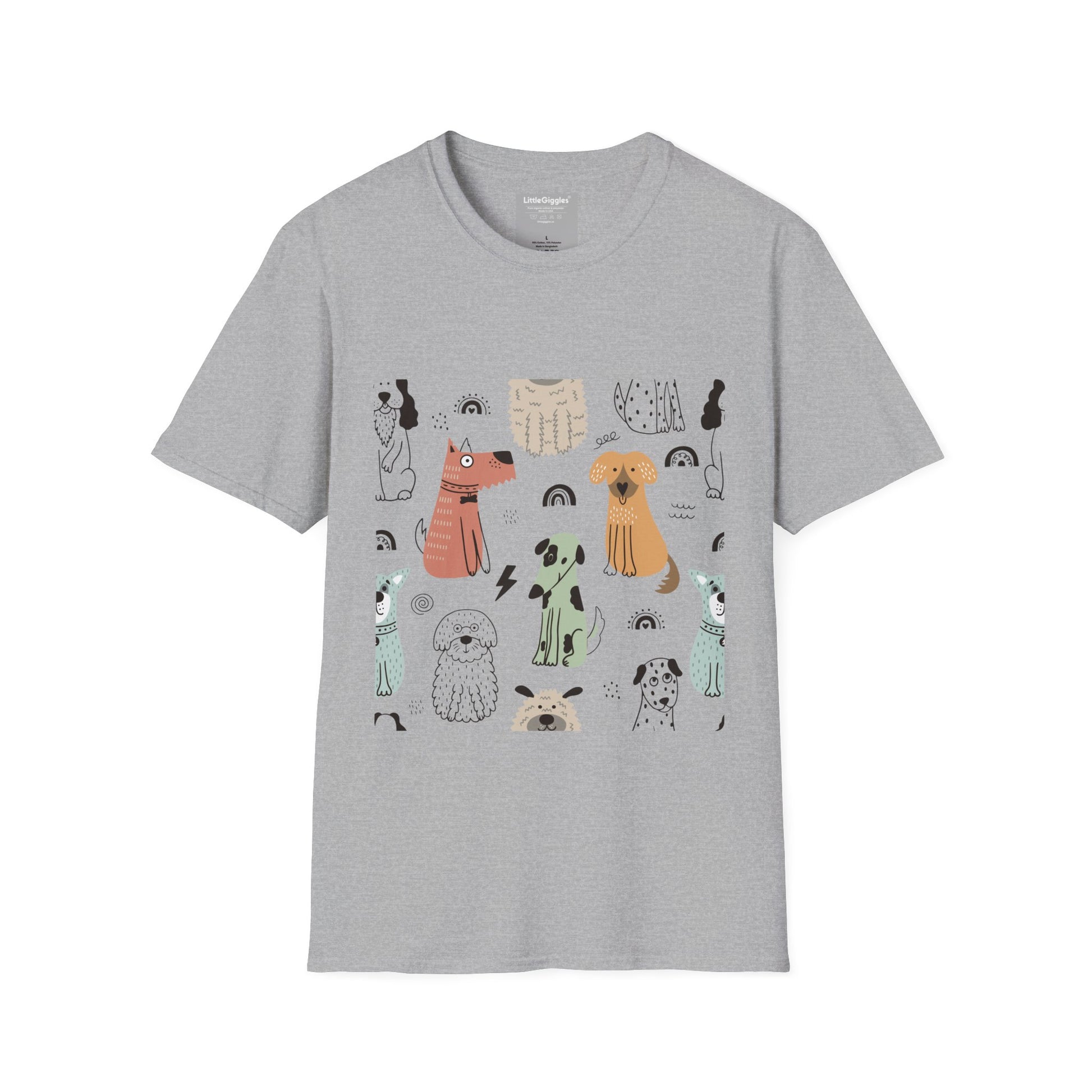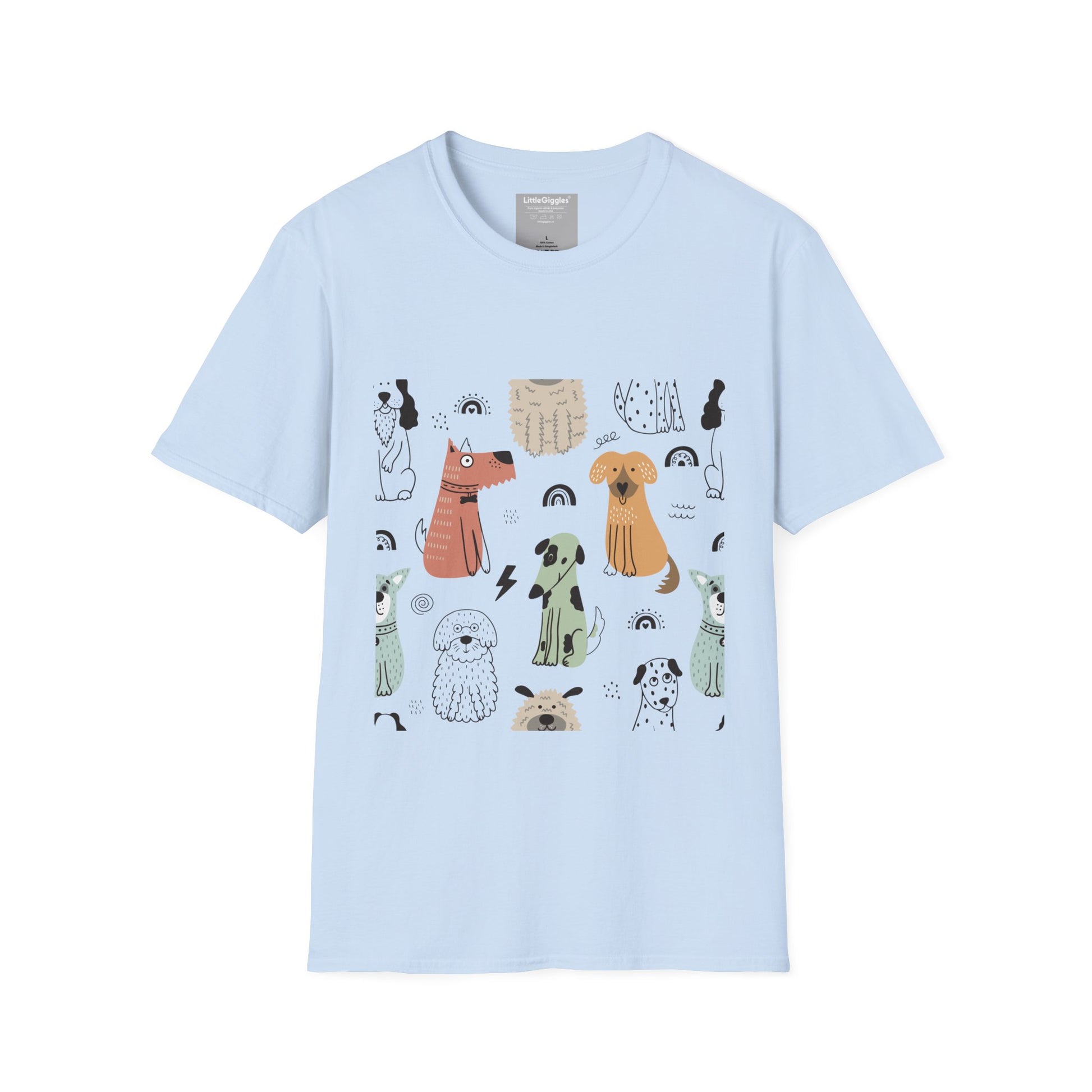 Introducing a charming Unisex Softstyle T-Shirt that brings a playful vibe to your wardrobe. Adorned with delightful illustrations of various dogs, this shirt captures a sense of joy and whimsy. Perfect for animal lovers, casual outings, or relaxed gatherings, it seamlessly fits into everyday life.