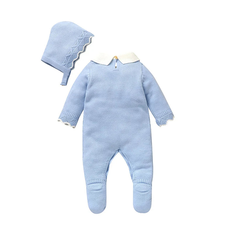 Keep your little one cozy and stylish this autumn with this 2-piece knitted romper and hat set. Made from soft acrylic, it provides gentle warmth and comfort for newborns during cooler days. The charming collar design adds a touch of classic style, making it perfect for everyday wear or special outings. Easy to put on and take off, this outfit ensures your baby stays snug and happy all season long.