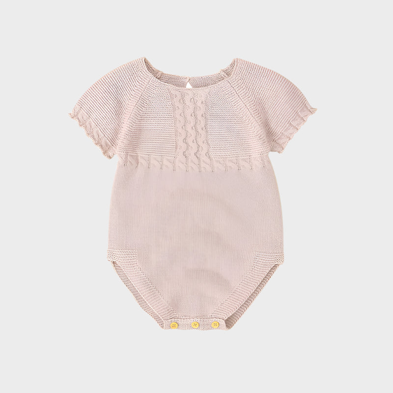 This Summer Bodysuit is crafted from soft muslin fabric, perfect for keeping newborn baby girls comfortable and cool during warm days. Its solid color design and short sleeves provide a simple, breathable outfit that’s gentle on delicate skin. Ideal for everyday wear, this one-piece bodysuit offers ease of movement and softness, supporting your little one’s comfort all summer long.