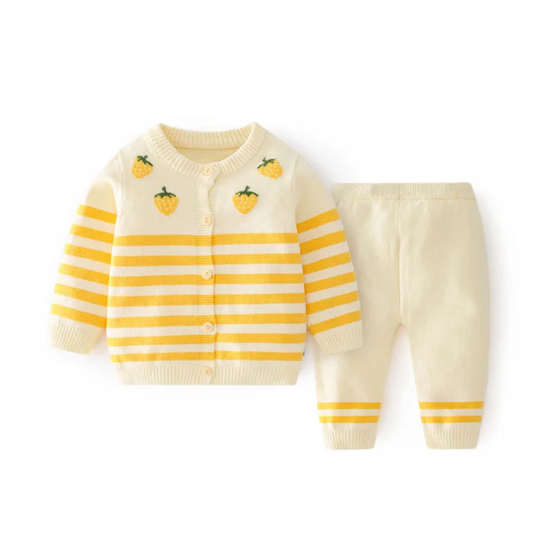This two-piece autumn strawberry outfit is perfect for the upcoming season. Made with high-quality materials, it provides both style and comfort. The outfit includes a cozy sweater and matching pants, making it easy to mix and match with other pieces. Get ready for cooler weather with this cute and versatile outfit.