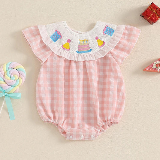 Embroidery Plaid Short Sleeve Romper