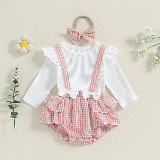 Embroidered Long Sleeve Plaid Romper