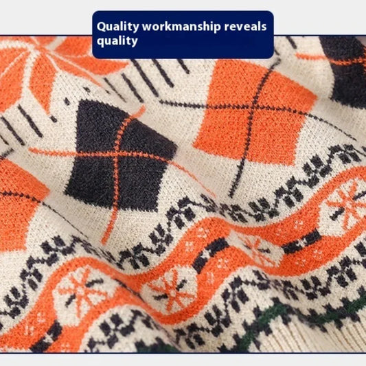 Diamond Pattern Cartoon O-neck