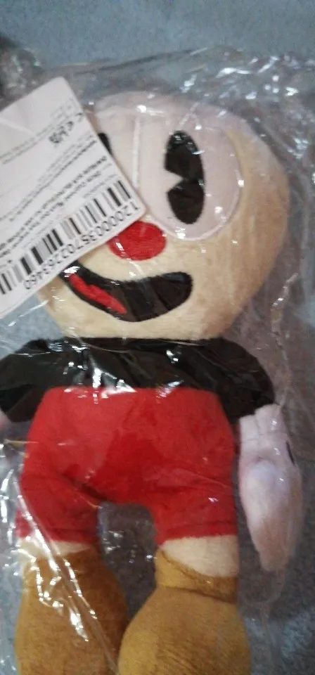The Mugman & Cuphead plush doll features the iconic design of the Cuphead show, with his trademark cup-shaped head, expressive face, and detailed outfit.