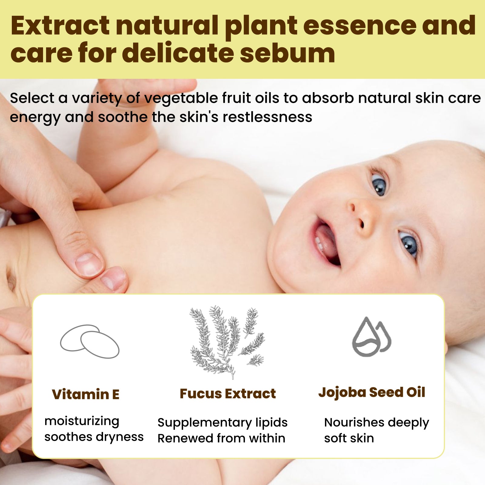 Our baby anti-crack cream contains ceramide 3, calendula extract. It can highly moisturize and repair dry cracks. Its use is simple: take appropriate amount of this product, apply to dry areas to be repaired, gently massage until absorbed. It also moisturizes and prevents chapping.