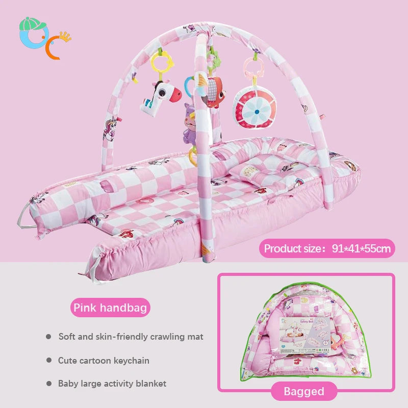 Encourage your little one’s exploration with this Multifunctional Fitness Crawling Mat designed for infants 0-24 months. Featuring colorful cartoon designs and fun sounding pendants, it turns tummy time and crawling into an engaging playtime adventure. Soft and safe, this mat supports motor skill development while keeping your baby entertained and comfortable. Perfect for pedal play and interactive fun!
